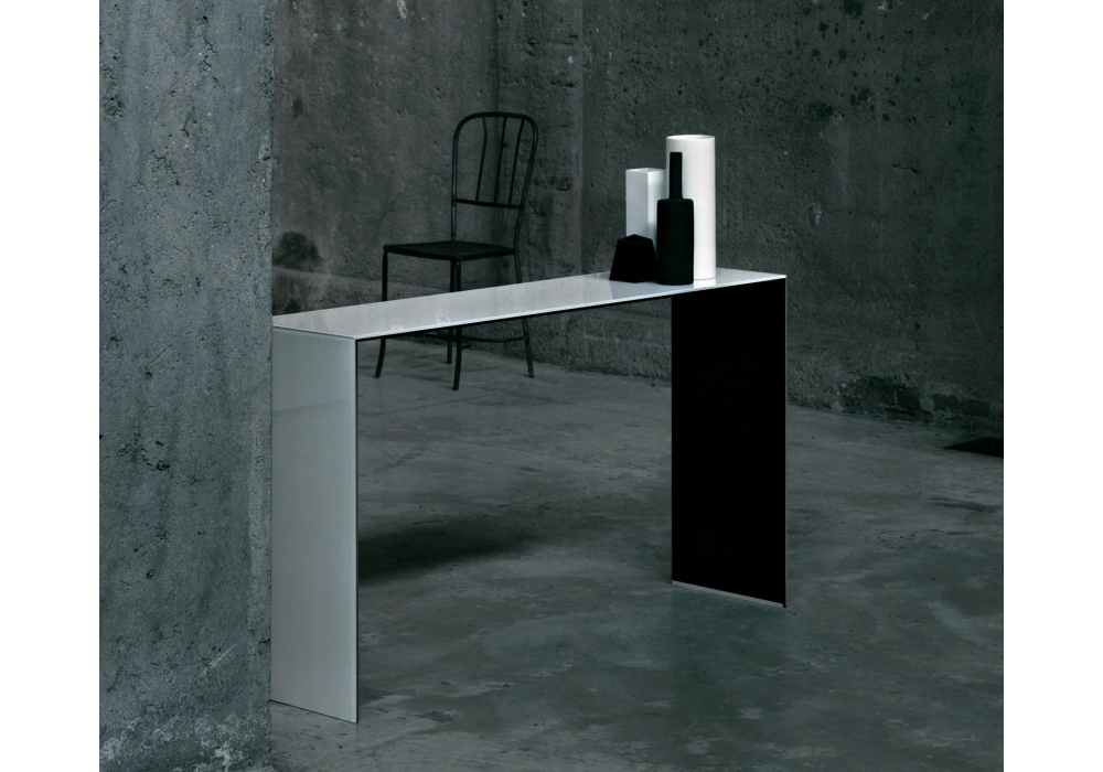 SiO2 Bridge, von Piero Lissoni für Glas Italia entworfen, ist eine Brückenkonsole aus Verbundglas. Erhältlich in glänzend oder matt lackiertem Glas, mit der Möglichkeit, die Farbe der Innen- und Außenoberfläche frei zu kombinieren.