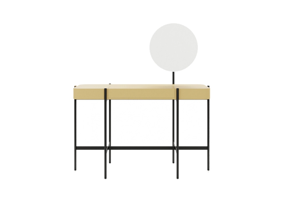 Caillou, von Liu Jo Living Collection entworfene ist ein Schreibtisch, eine Konsole oder ein Schminkset. Gestell aus MDF-Holz. Fuß aus pulverbeschichtetem Metall. Erhältlich in lackiert oder mit Holzeffekt.