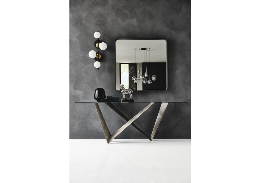 Westin von Giorgio Cattelan für Cattelan Italia entworfen, ist eine Konsole mit Tischplatte aus Glas und Basis aus lackiertem Stahl. Erhältlich in vier Größen.
