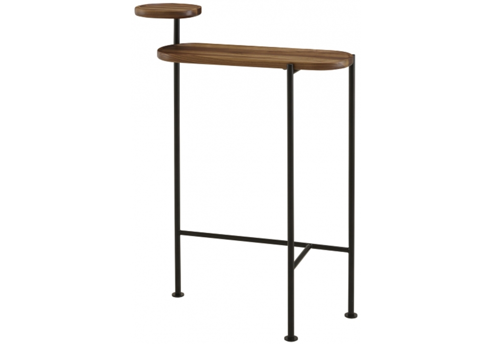 Loomy von Roberto Paoli für Ligne Roset entworfen, ist eine Konsole mit Struktur aus mattschwarzem Stahlrohr Ø 2 cm und Platten aus massivem amerikanischem Nussbaum natur seidenmatt lackiert. Muss an einer Wand befestigt werden.