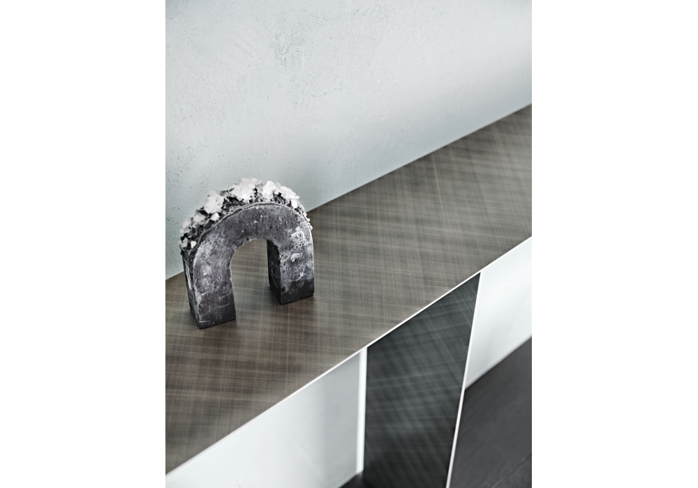Tee von Paolo Cattelan für Cattelan Italia entworfen, ist ein Konsole mit Gestell aus lackiertem Stahl in folgenden Farben: Brushed Bronze oder Brushed Grey.