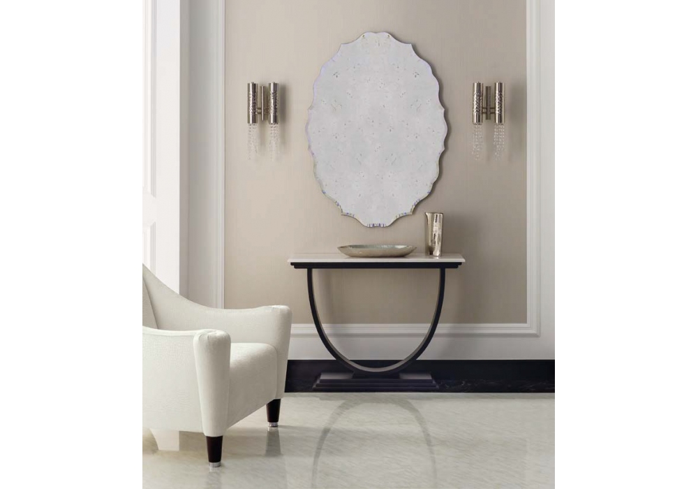 Ippolito von Opera Contemporary entworfen, ist eine Konsole mit Marmorplatte und Eschenholzstruktur. Verfügbar in mehreren Ausführungen.