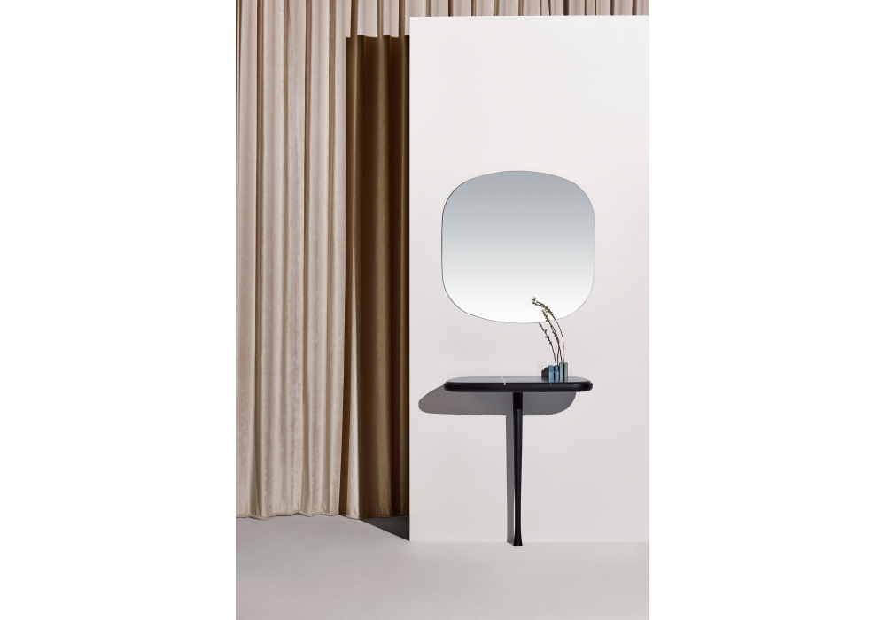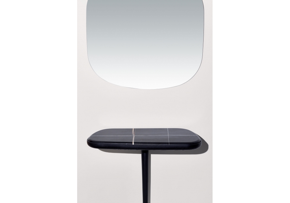 Consola, von Andrés Martinez für Nomon entworfen, ist eine Konsole mit Struktur aus natürlichem Nussbaum oder schwarzer Esche, mit Platte aus Nussbaum oder Marmor in verschiedenen Ausführungen.