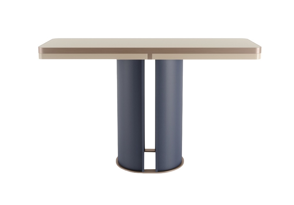 Zero von Andrea Bonini für Turri entworfen, ist eine Konsole mit Struktur aus MDF und Sperrholz, die mit verschiedenen Ledern bezogen sind. Platte aus glänzend lackiertem Holz oder Marmor. Metallteile in dunklem oder hellem mattem Platin-Finish.