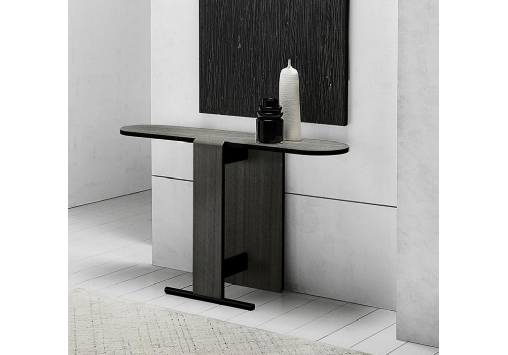 Elephant von Pietro Russo für Casamilano entworfen, ist eine Konsole mit einer Struktur aus Spanplattenplatten, die mit Essenz oder glänzend oder matt lackiert sind. Basisrohr aus mattschwarz lackiertem Metall.