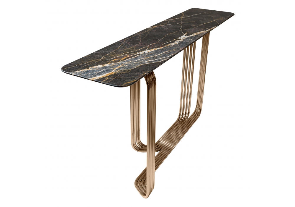 Vincent von Alessandro La Spada für Visionnaire entworfen ist eine viereckige Konsole mit rohrförmigem Edelstahlsockel. Die Platte besteht aus Marmor, gehärtetem Rauchglas, Harz oder Walnusswurzel. Vincent ist in verschiedenen Ausführungen erhältlich.