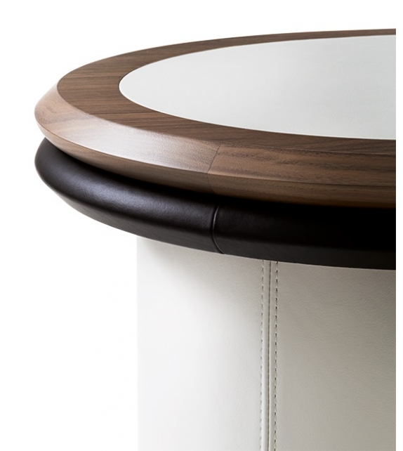 Liz von Silvia Musetti für Giorgetti entworfen, ist eine Konsole aus Canaletto-Walnuss und mit Leder bezogenen Teilen. Erhältlich in verschiedenen Ausführungen und mit der Möglichkeit, LEDs hinzuzufügen.