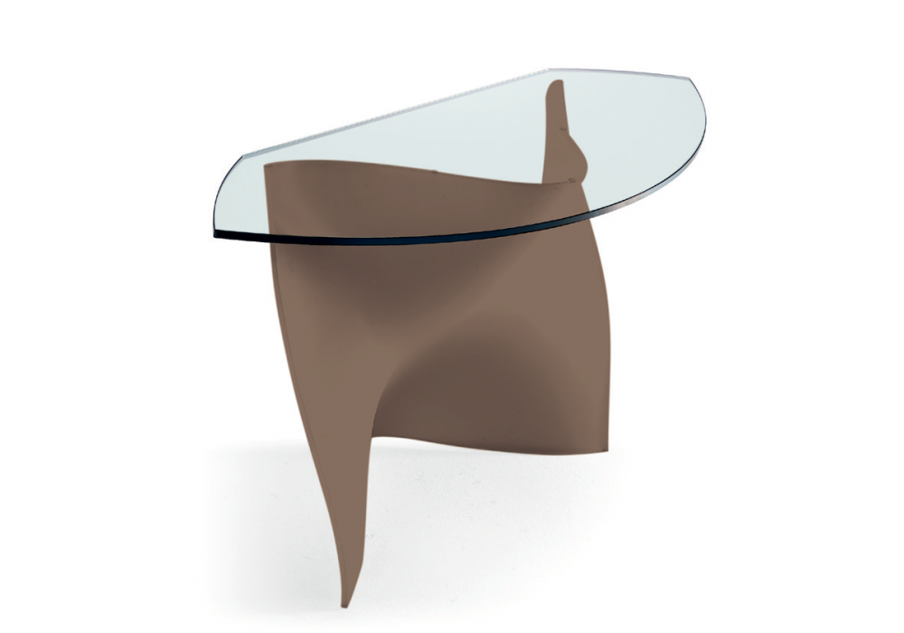 Gaudì von Dietmar Joester für Reflex Angelo entworfen, ist eine Konsole mit einer Basis aus extraklarem gebogenem Glas, Bronze oder Rauchglas mit sandgestrahlter Oberfläche. Auch verfügbar in sandgestrahltem und lackiertem Glas. Transparente Glasplatte.