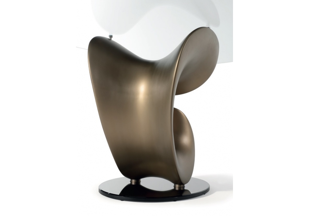 Parentesis von Tulczinsky für Reflex Angelo entworfen, ist eine Konsole mit satiniertem Sockel: Messing, dunkles Messing, Titan und Sockel aus geräuchertem Spiegelglas. Halbrunde Tischplatte aus extraklarem Glas.