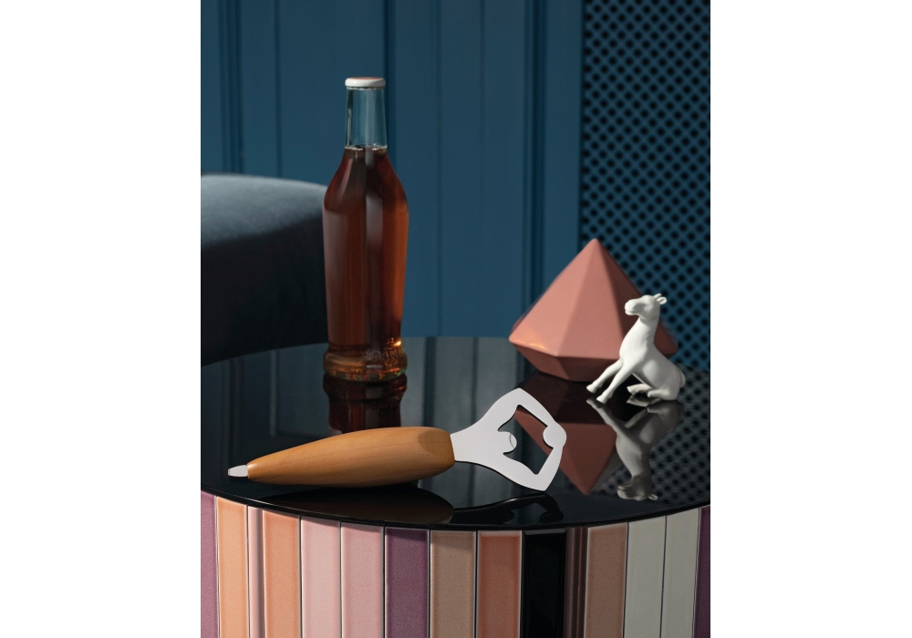 Ercolino von Andrea Branzi für Alessi entworfen, ist ein Flaschenöffner aus Birkenholz und Edelstahl 18/10.