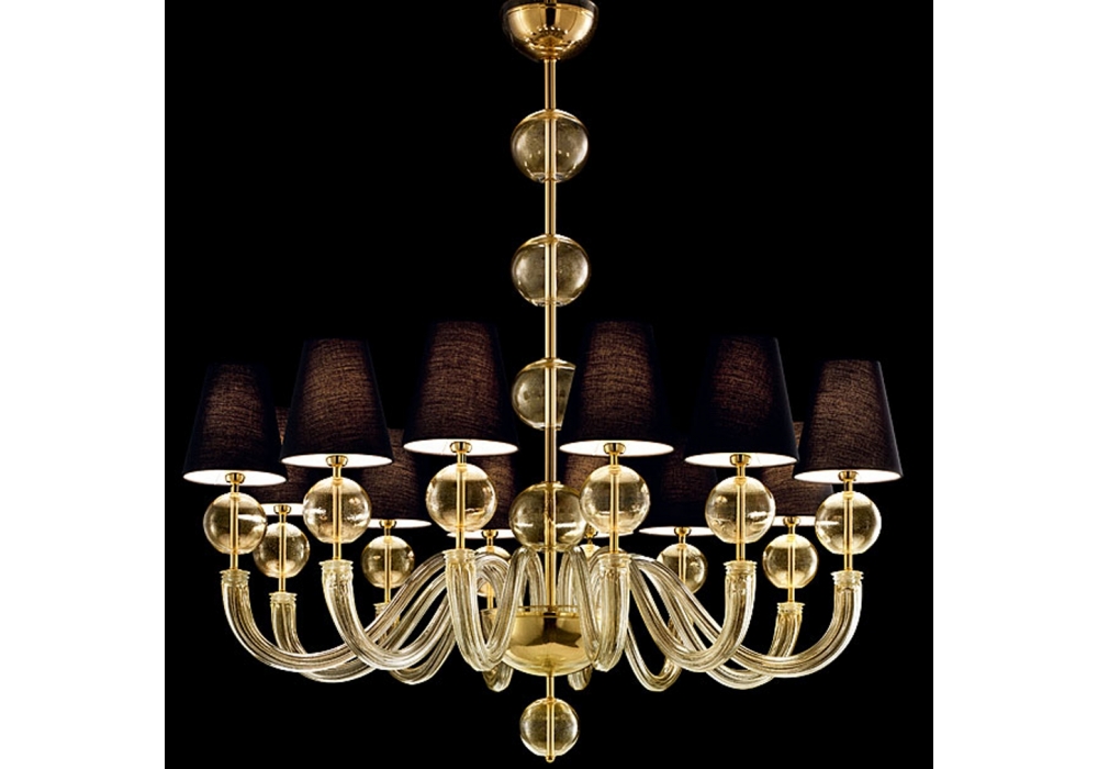 Vermont hergestellt und entworfen von Barovier & Toso ist ein Leuchter mit tragender Struktur und Details aus Metall, bedeckt mit venezianischem Glas. Die Lampenschirme sind aus Stoff und schirmen dimmbare LED- oder Halogenlichtquellen ab. Vermont ist in verschiedenen Modellen und Ausführungen erhältlich.