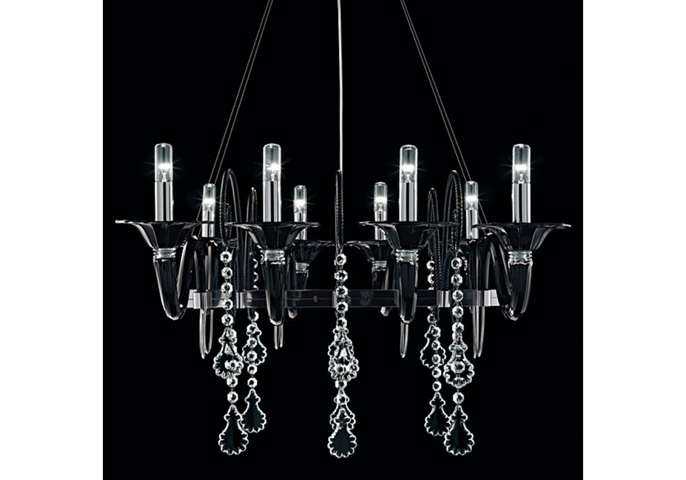 Mood Taif entworfen von Franco Raggi für Barovier & Toso ist ein Leuchter mit Metalltragstruktur und Armen, die mit venezianischem Glas bedeckt sind. Als Lichtquellen kommen dimmbare LEDs oder Halogene zum Einsatz. Mood Taif ist in verschiedenen Modellen und Ausführungen erhältlich.
