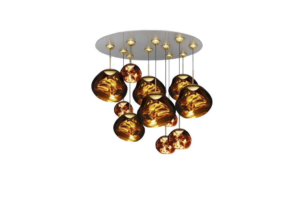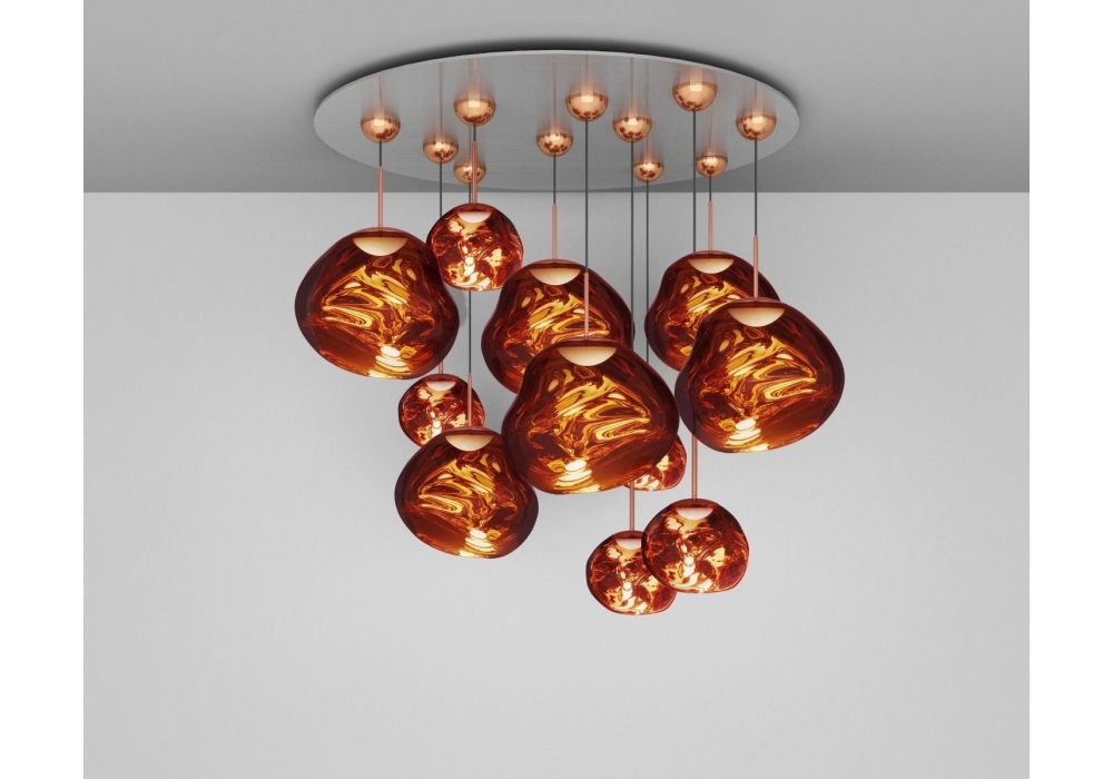 Melt Mega von Tom Dixon entworfen, ist ein Aufhängungssystem aus Polycarbonat-Lampen. System in verschiedenen Ausführungen erhältlich.