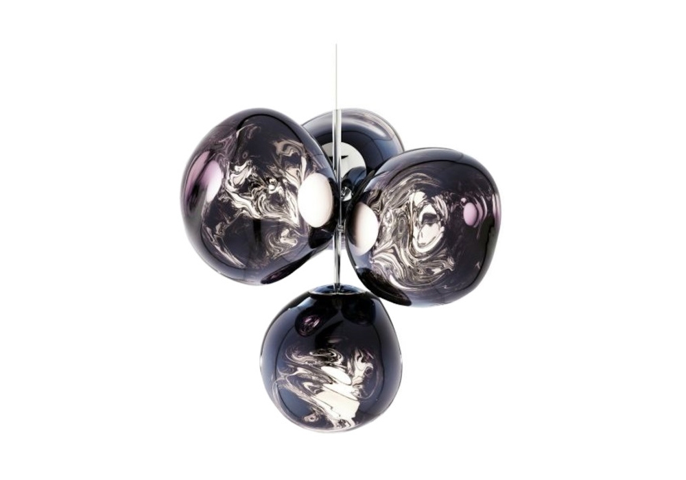 Melt Small von Tom Dixon entworfen, ist ein Kronleuchter bestehend aus vier Polycarbonat-Lampen, verfügbar in verschiedenen Ausführungen.