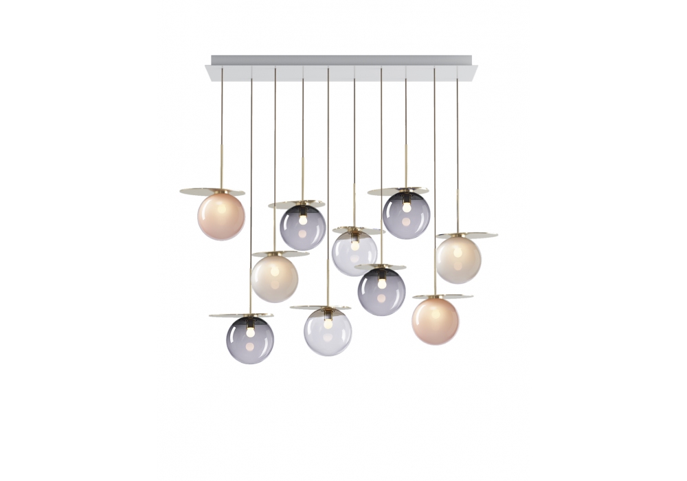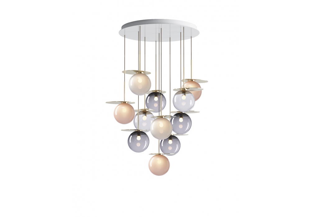 Umbra von Dechem Studio für Bomma entworfen, ist ein Leuchter, der von Hand aus mundgeblasenen Kristalldiffusoren hergestellt wird. Es ist in verschiedenen Konfigurationen und Ausführungen erhältlich.