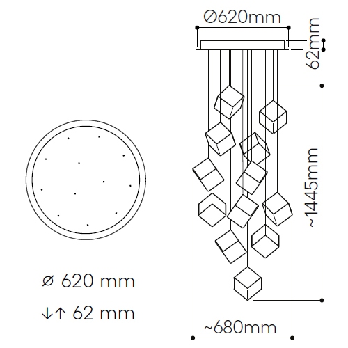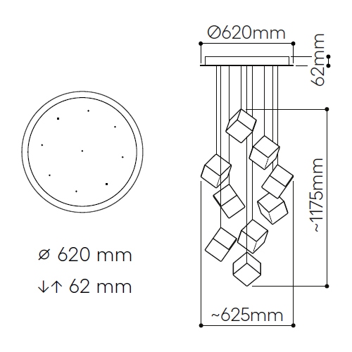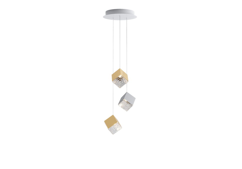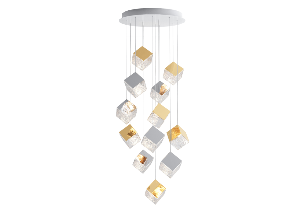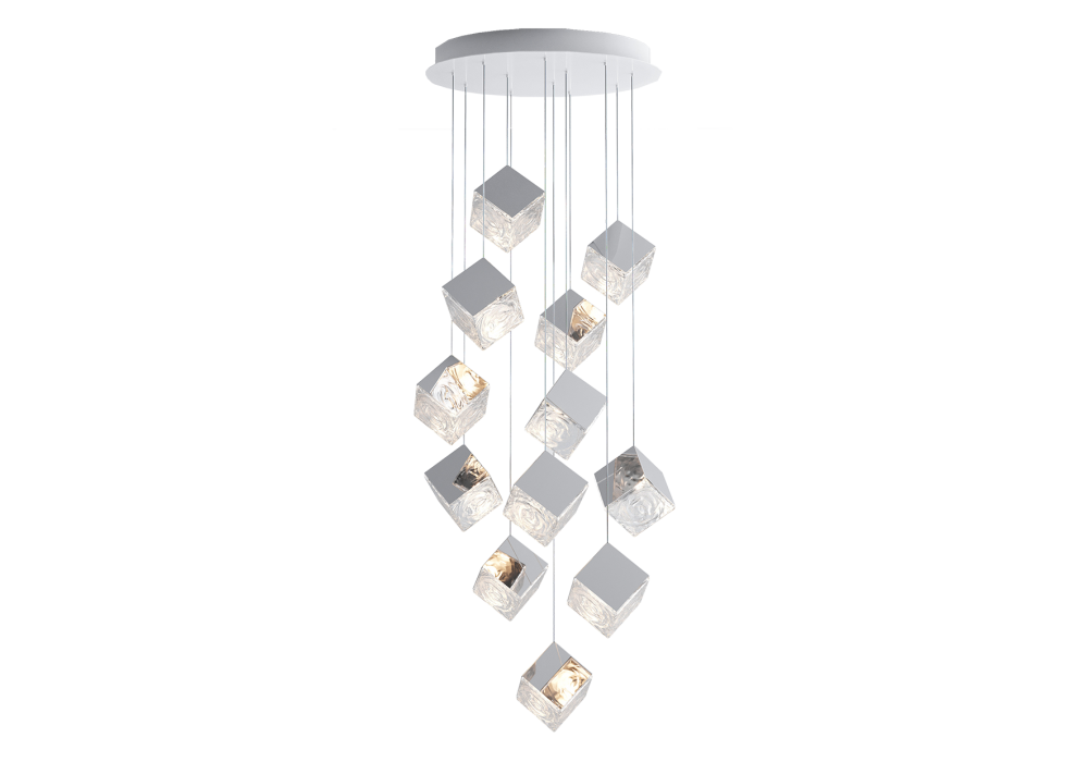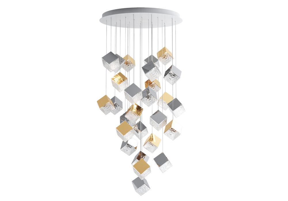 Pyrite von Studio Dechem für Bomma entworfen, ist ein Leuchter, der von Hand aus mundgeblasenen Kristalldiffusoren hergestellt wird. Es ist in verschiedenen Ausführungen und Konfigurationen erhältlich.