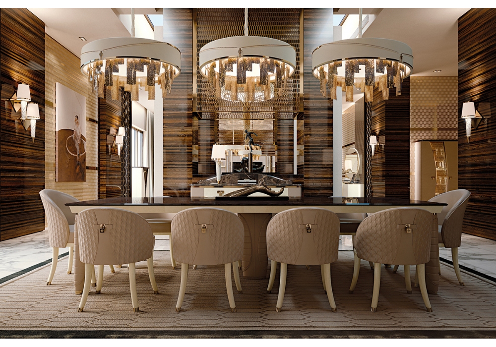 Vougue von Andrea Bonini für Turri entworfen, ist ein Leuchter mit Metallstruktur und Bezug aus verschiedenen Ledern mit der Anwendung von goldenen Metalldetails und dekorativen Reißverschlüssen. Verfügbar in zwei Dimensionen.