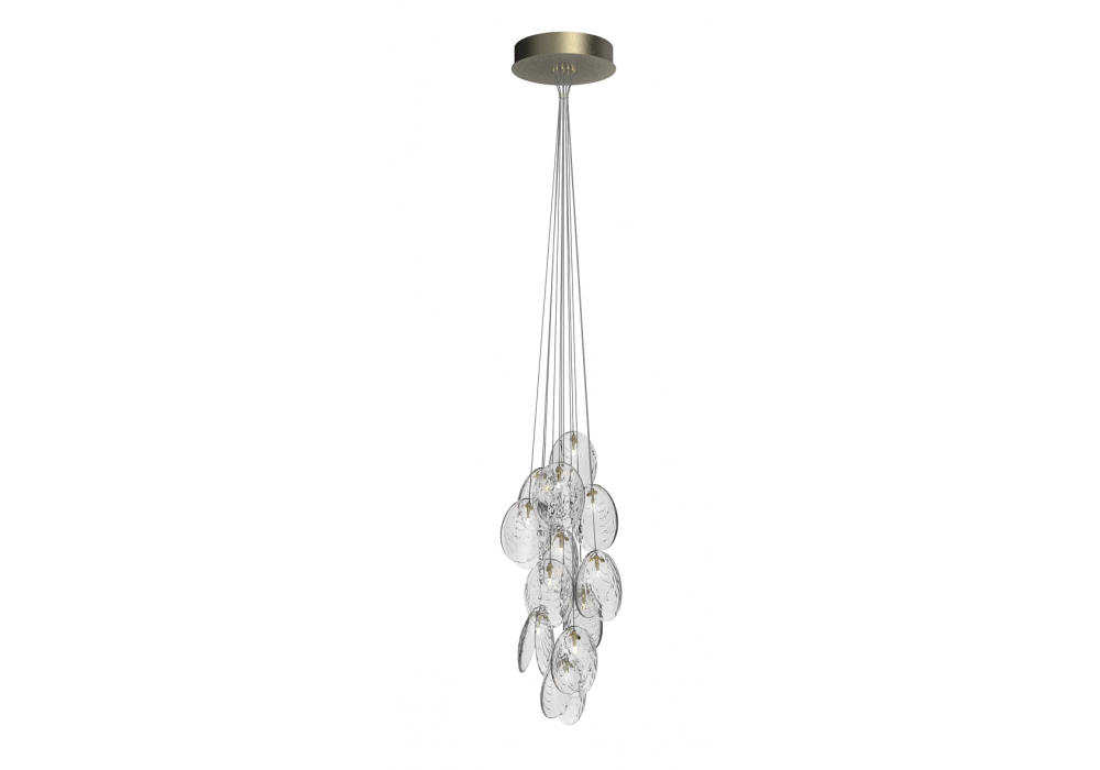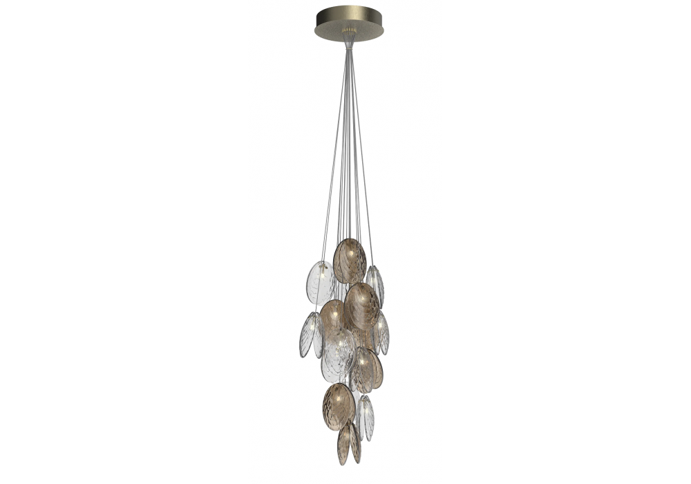 Mussels Clusters von Václav Mlynář für Bomma entworfen, ist ein Leuchter mit handbemalten Pressglasdiffusoren und Metallbeschlägen. Es ist in verschiedenen Ausführungen und Modellen erhältlich.