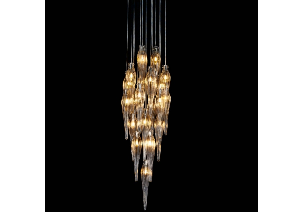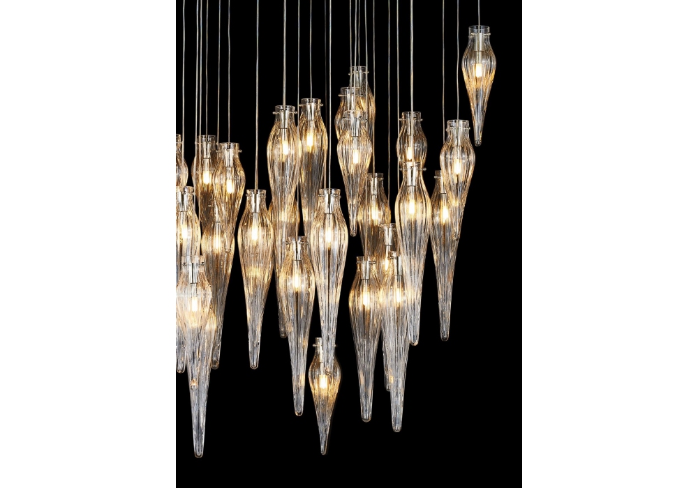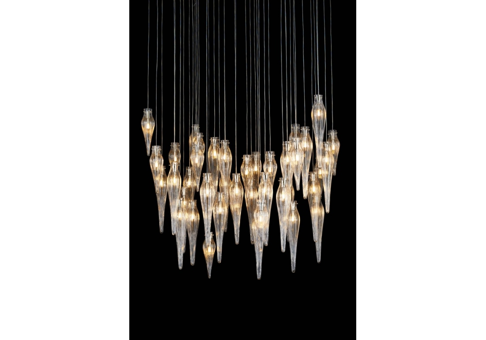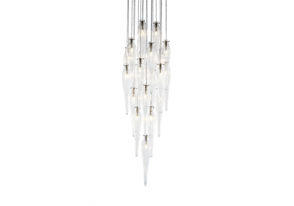 Primavera Icicles von William Brand für Brand Van Egmond entworfen, ist ein Leuchter mit Metallstruktur und Glasdiffusoren. Verfügbar in mehreren Ausführungen und Abmessungen.