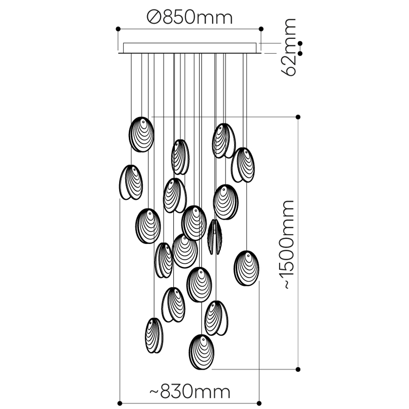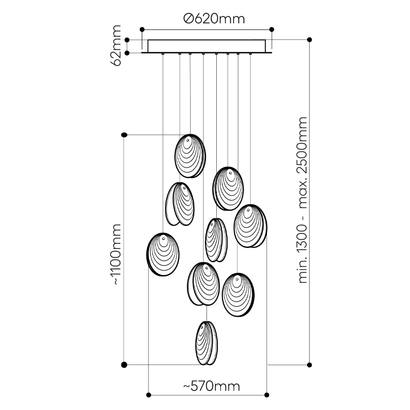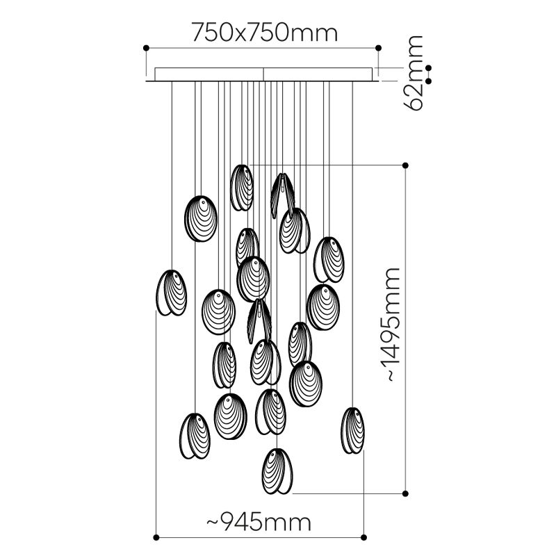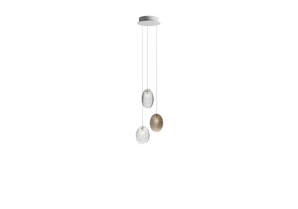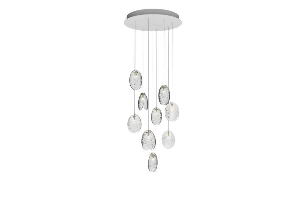 Mussels von Václav Mlynář für Bomma entworfen, ist ein Leuchter mit handbemalten Pressglasdiffusoren und Metallbeschlägen. Es ist in verschiedenen Ausführungen und Modellen erhältlich.