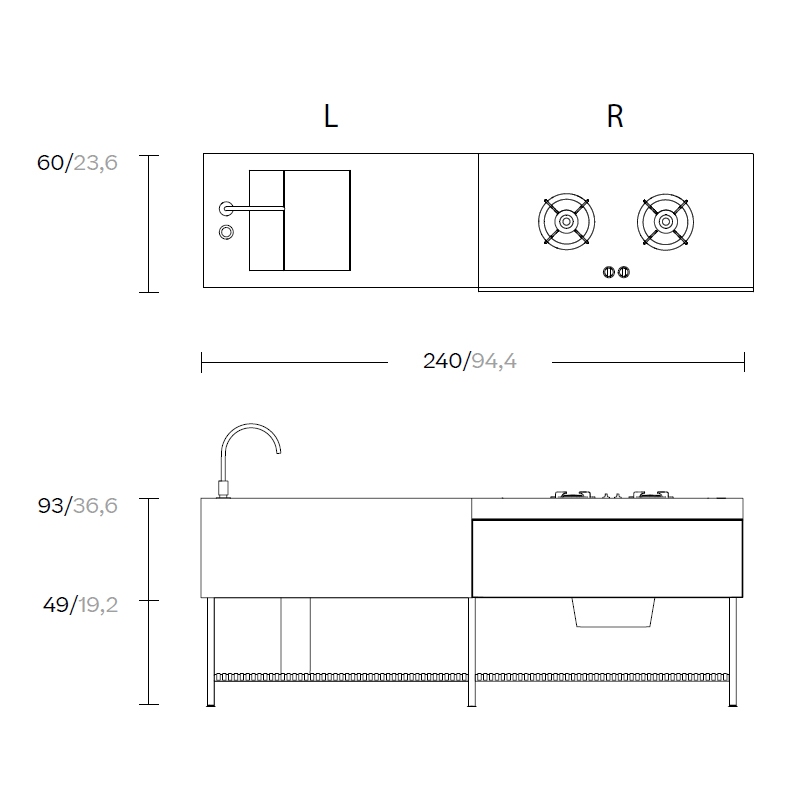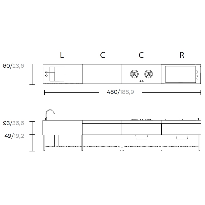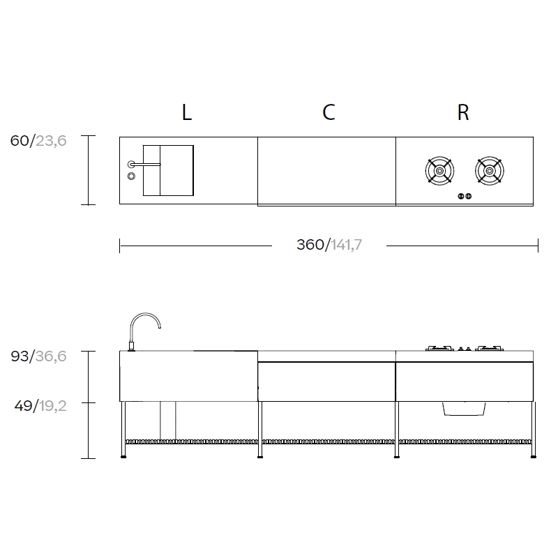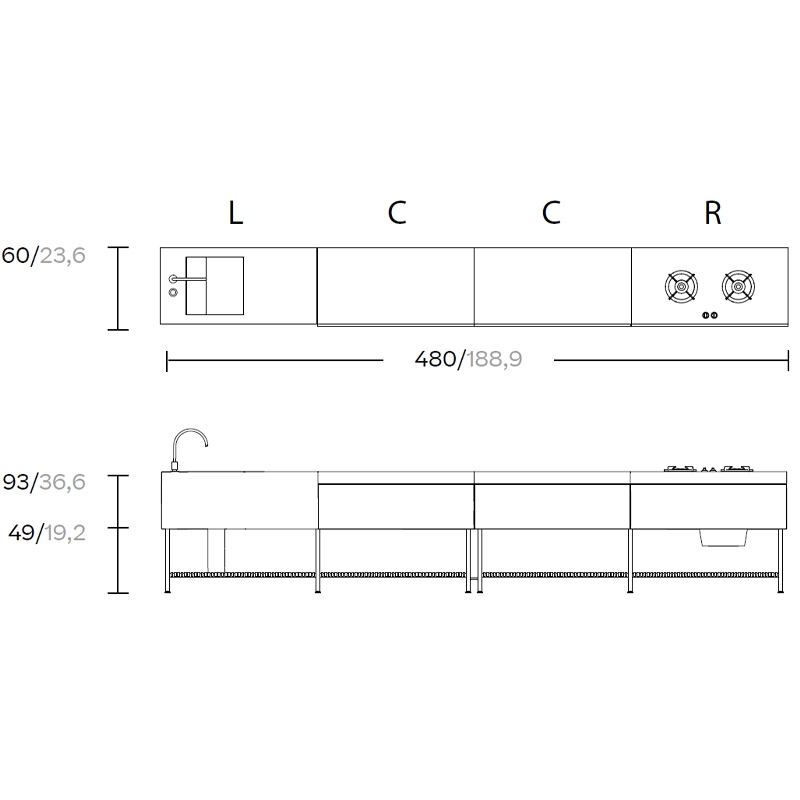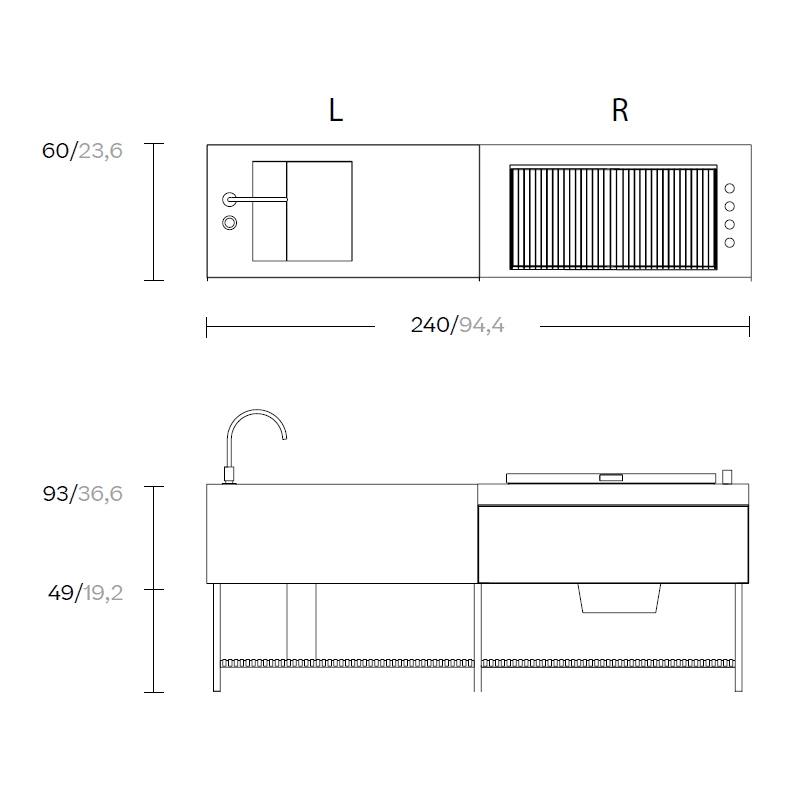 Base Kitchen von Kettal Studio ist eine modulare Außenküche die in verschiedenen Konfigurationen erhältlich ist. Sie umfasst eine Küche mit Gasherd, Grill, Spüle, Arbeitsplatte und Unterregal aus Teakholz. Für eine individuelle Konfiguration wenden Sie sich bitte an unseren Kundenservice.