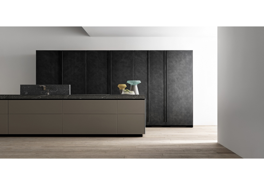 Genius Loci von Gabriele Centazzo für Valcucine entworfen, ist eine Küche anpassbare Küche mit verschiedenen Oberflächen und Verfahren, für ein anspruchsvolles Ergebnis und maximale Forschung. Die Platte kann aus Glas, Stahl, Carbontec, Acryl, Stein oder Holz bestehen. Türen, Wandelemente und Säulen können in Laminat mit Paneelen in mittlerer Dichte, Holz, Acryl, Stahl und Vitrum sein.