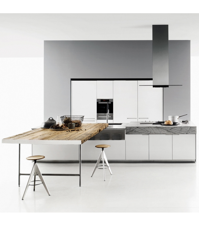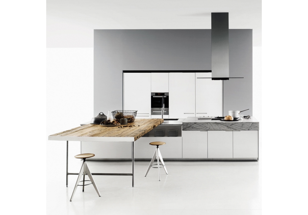 Duemilaotto, von Piero Lissoni für Boffi entworfen, ist eine Küche entworfen, um die Verwendung von natürlichen Materialien zu bevorzugen. Die Dunstabzugshauben verwenden innovative Installationssysteme. Erhältlich in verschiedenen Materialkombinationen.