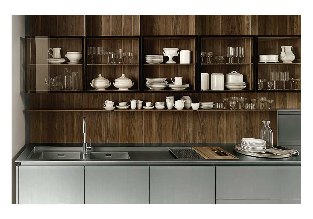 APR60, entworfen von Piero Lissoni, ist ein funktionales, rationales, geräumiges und nüchternes Küchenmodell, das sich perfekt sowohl in einen offenen Wohnbereich als auch in einen speziellen Raum einfügt. Seine klare Form und die Funktionalität der Elemente machen es im gewünschten Stil und in den gewünschten Größen anpassbar. Erhältlich in verschiedenen Ausführungen und Zusammensetzungen. Wenden Sie sich an unseren Kundendienst, um Ihr Gerät zu entwerfen.