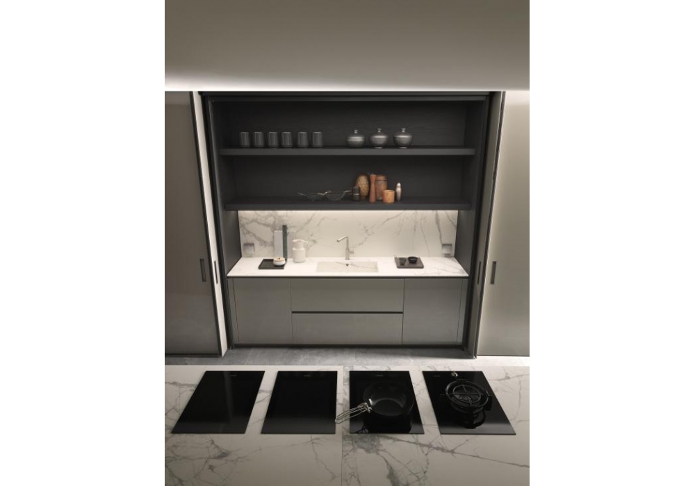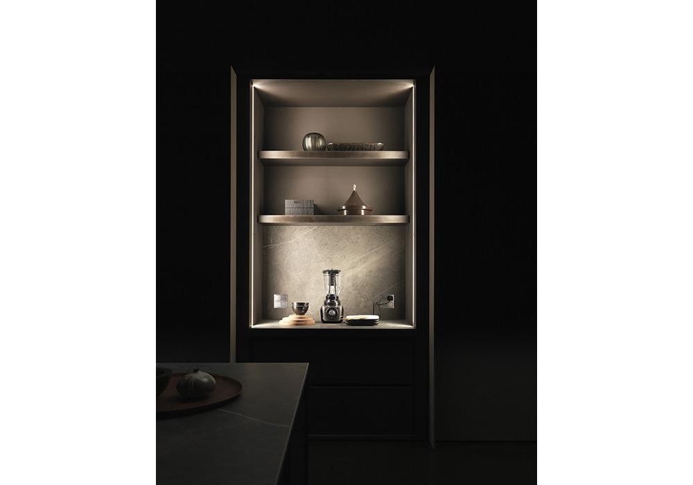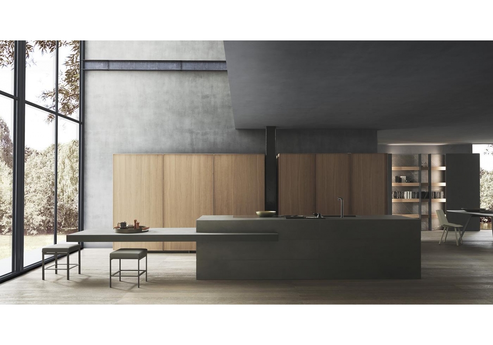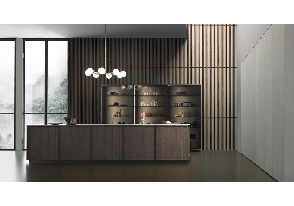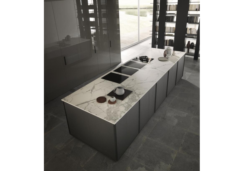 Frame, entworfen und hergestellt von Modulnova, ist eine neue Konzeptküche mit dünner Rahmentür und Griff im Umfang. Die große zentrale Insel ist horizontal mit einer freitragenden Halbinsel, die durch raffinierte und elegante Säulen vervollständigt wird. Die Kombination verschiedener Materialien macht sie zu einer funktionalen und praktischen Küche. Wenden Sie sich an unseren Kundendienst, um Ihren Rahmen mit den von Ihnen bevorzugten Funktionen zu erstellen.