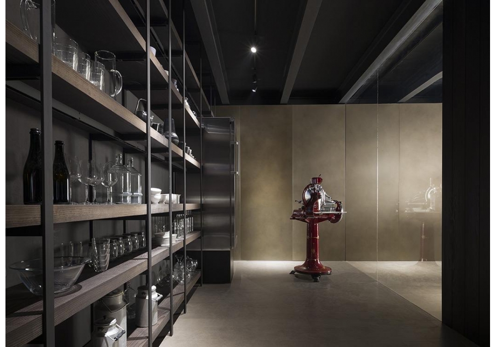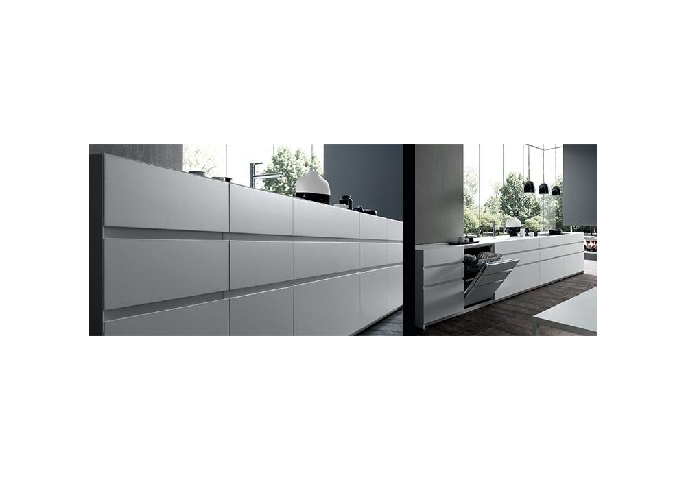 Fly, entworfen und hergestellt von Modulnova, ist eine Küche mit Platte aus Corian, Fenix, Stahl oder anderen Materialien und Sockeln aus Eiche, Harz oder satiniert lackiert. Die Türen zeichnen sich durch eine oder mehrere Seiten mit 45 ° abgeschrägten Kanten aus, die in Kombination mit konterförmigen Seiten und Oberseiten die Schaffung eines Monolithen ohne sichtbare Dicken ermöglichen. Dünne Eisenpfosten in Kombination mit dicken Regalen bilden eine praktische offene Struktur. Wenden Sie sich an unseren Kundenservice, um Ihren Fly mit den von Ihnen bevorzugten Funktionen zu erstellen.