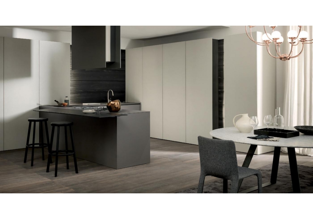 MH6, entworfen und hergestellt von Modulnova, ist eine Küche, mit der Sie die Räume des Hauses dank des Schiebewandsystems und einer sehr funktionellen Insel optimieren können. The Wall gleitet auf einer an der Wand befestigten Führung und kann in verschiedenen Materialien und Ausführungen hergestellt werden. Die Türen der Unter- und Oberschränke sind mit einem Push-Pull-Öffnungssystem ausgestattet, die Platte ist in Laminat, Milltech, Fenix und vielen anderen Materialien erhältlich. Es ist auch möglich, eine bestückte Wand mit Speisekammer einzufügen. Wenden Sie sich an unseren Kundendienst, um Ihren MH6 mit den von Ihnen bevorzugten Funktionen zu erstellen.