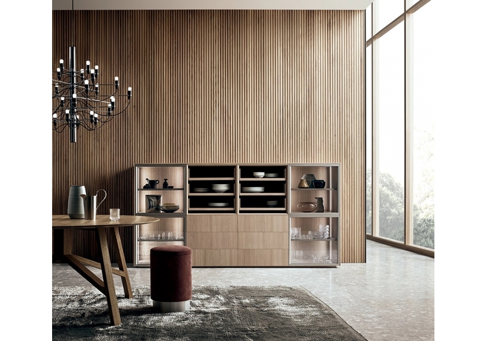 K-lab 01 von Ernestomeda entworfen, ist eine Küche mit innovativem Design, in der Tradition harmonisch mit Experimenten koexistiert und "Kult"-Elemente mit zeitgenössischen Linien, technologischen Materialien und originellen Nutzungslösungen gemischt werden. Die Elemente, die K-Lab auszeichnen, sind zahllos: der Showcase, der an der Wand und auf dem Boden aufgehängt ist; das Cook Schneidebrett mit Aussparung für das Aufbewahrungszubehör; das Surf System, gekennzeichnet durch eine modulare Innenausstattung.