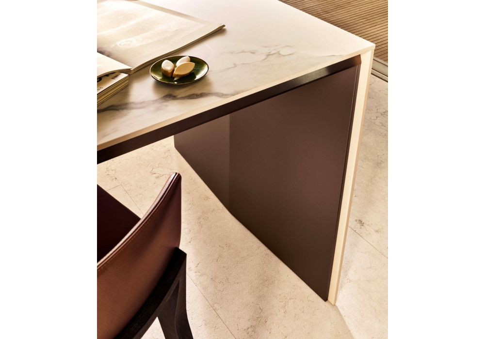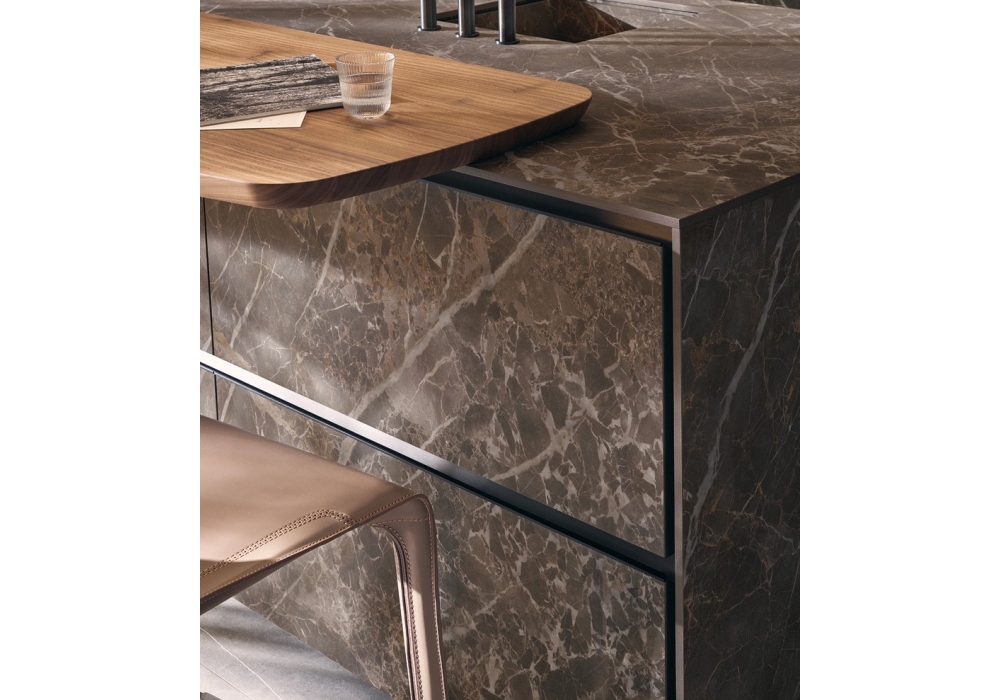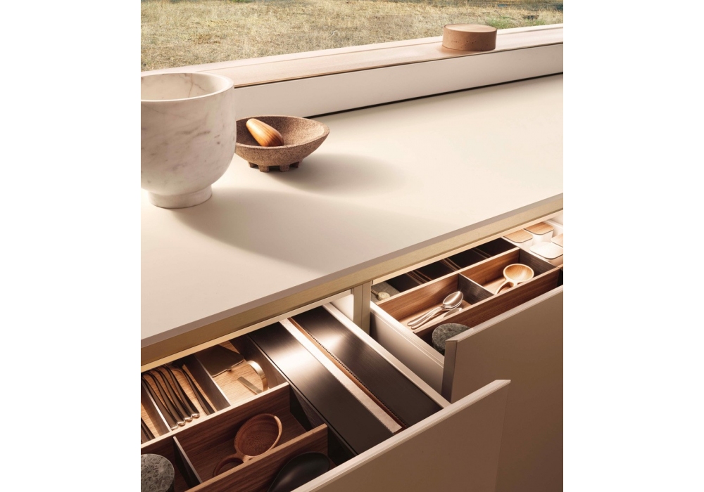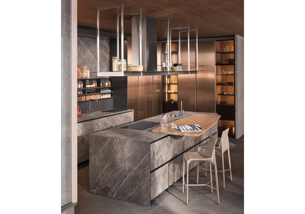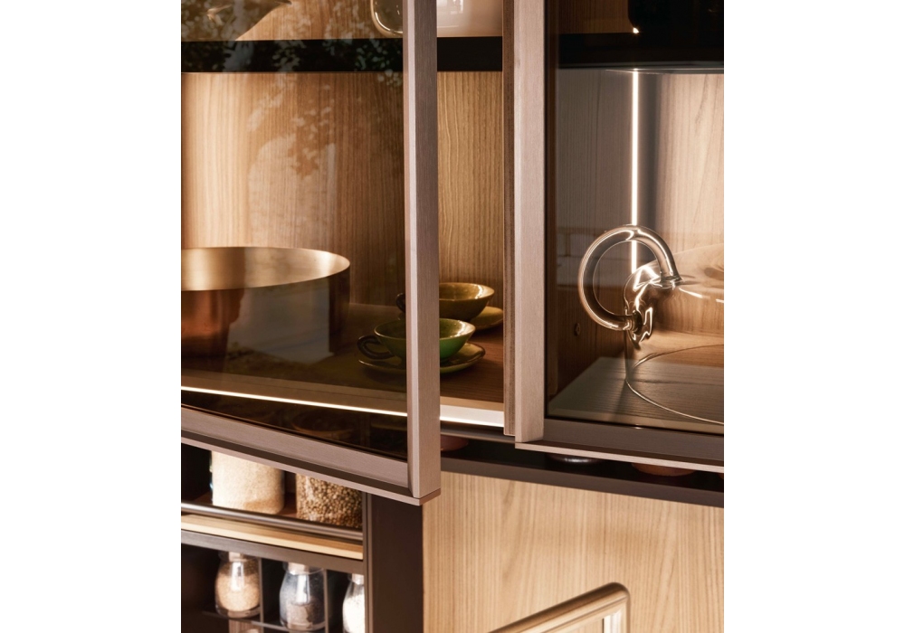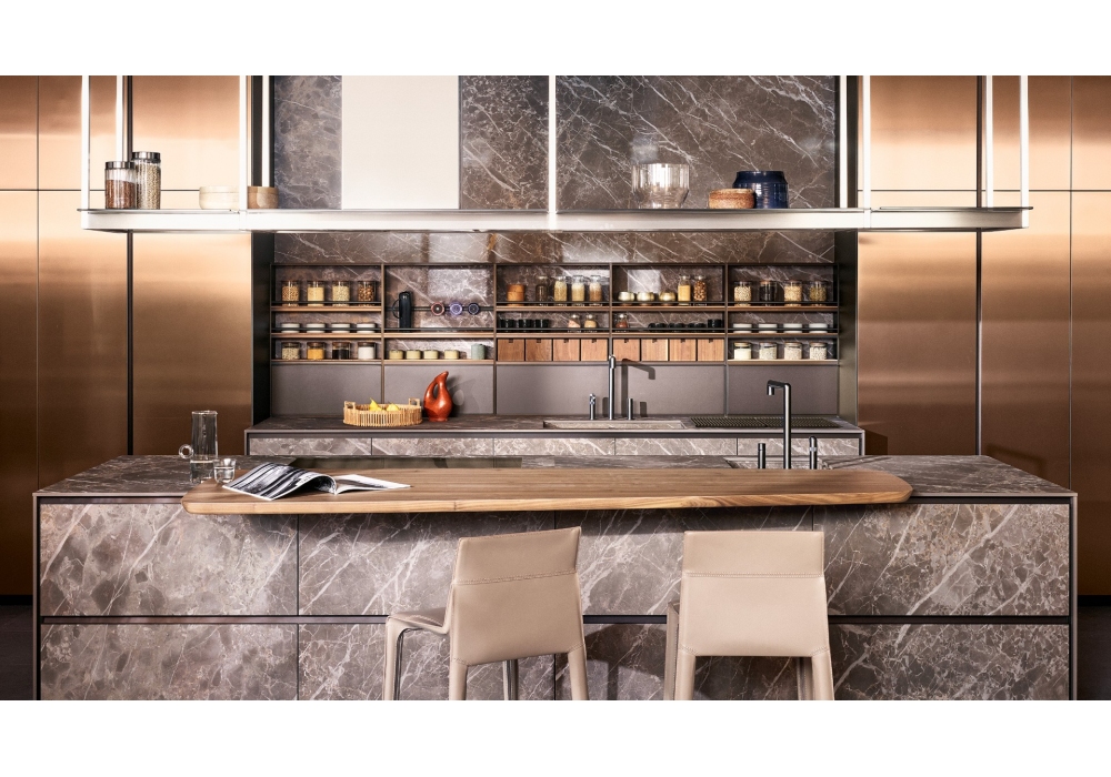Alea Pro von R&D Poliform entworfen, ist ein Küchensystem, das mit neuen Elementen angereichert ist und von den Bedürfnissen des zeitgenössischen Wohnens inspiriert ist: Die neuen offenen Unterschränke Day Shaker verwandeln die Insel in ein Funktionszentrum, während Arbeitsplatten unterschiedlicher Stärke den Betriebsbereichen Dynamik verleihen. Schubladen und Vitrinenschränke werden im Hinblick auf ein immer raffinierteres Design neu interpretiert. Alea Pro erweist sich erneut als ausgereiftes und vollständiges System, das dank der Link-Schiebetüren optisch in den Essbereich integriert und mit einer breiten Palette an Materialien und Ausführungen individuell gestaltet werden kann.