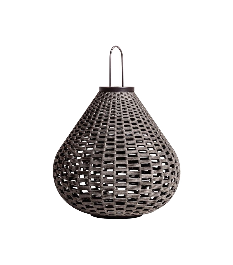 Sparkler von Kensaku Oshiro für Poltrona Frau entworfen, ist eine Laterne mit Struktur aus pulverbeschichtetem Basalt-Epoxid-Aluminium und gewebter Polypropylenschnur um den Rahmen. Es ist mit einer wiederaufladbaren LED-Lichtquelle ausgestattet und wird mit einem Netzteil geliefert. Es ist in drei verschiedenen Größen erhältlich. Nur für kleine Lampen sind das Deckenaufhängungsset und das Bodenaufhängungsset erhältlich.