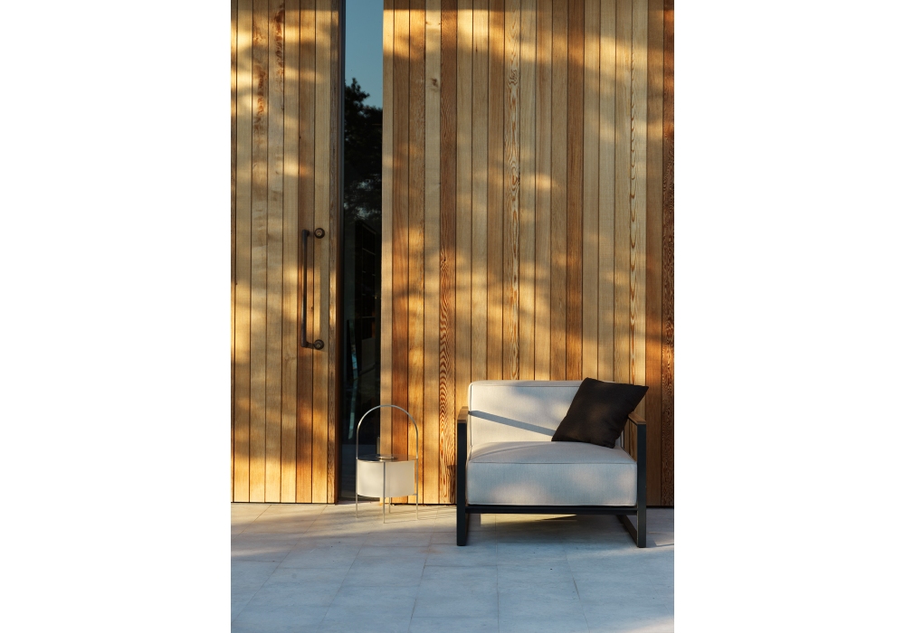 Garden von Broberg & Ridderstråle für Röshults entworfen, ist eine Laterne aus gebürstetem Edelstahl und Glas.