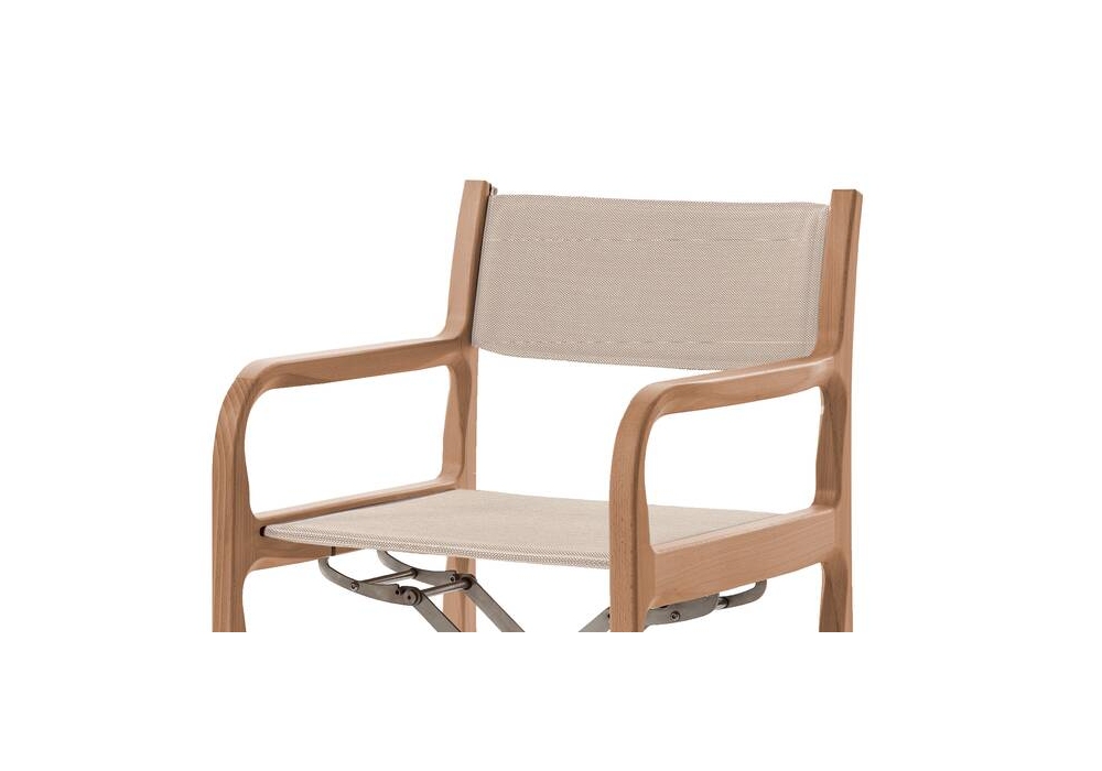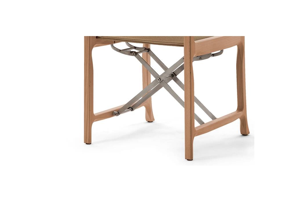 298 Unicredit Pavilion Project von Michele De Lucchi für Cassina entworfen, ist ein kleiner Klappstuhl mit Armlehnen aus massivem Buchenholz, einem Mechanismus aus gebürstetem Edelstahl und Stoffpolsterung.
