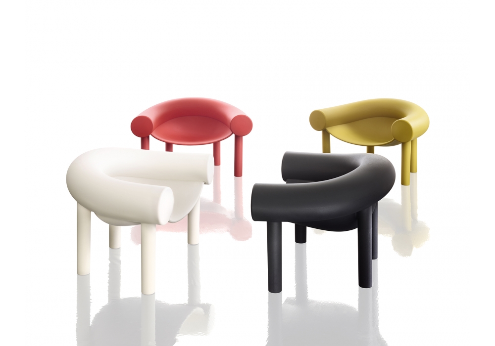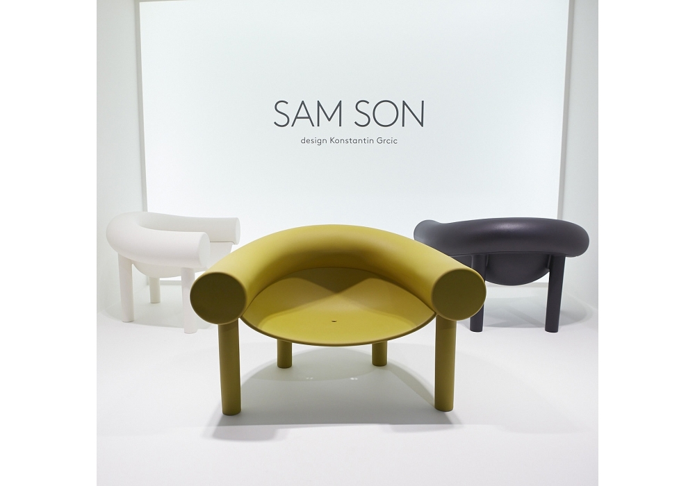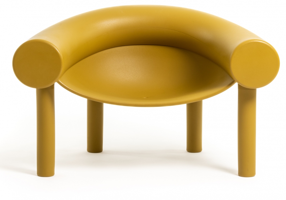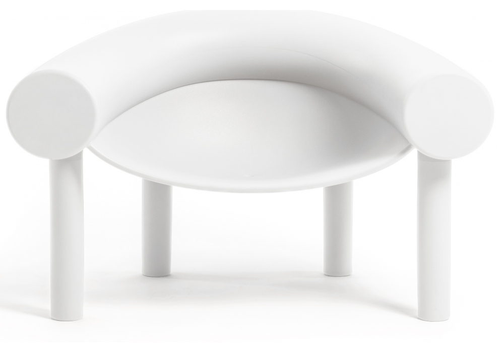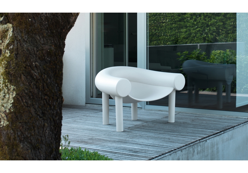 Sam Son von Konstantin Grcic für Magis entworfen, ist ein niedriger Sessel, auch für den Außenbereich geeignet, aus Polyethylen, verfügbar in verschiedenen Ausführungen.