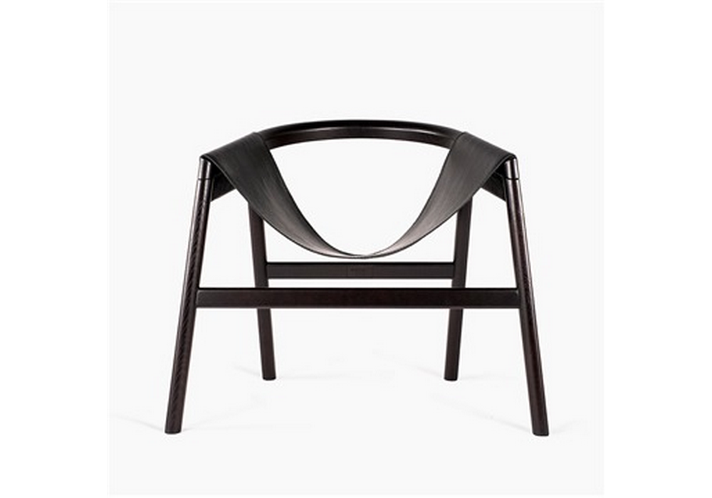 Dartagnan, von Toni Grilo für Haymann entworfen, ist ein Sessel mit Ledersitz und Gestell aus Walnuss, Natur oder schwarzer Eiche erhältlich.