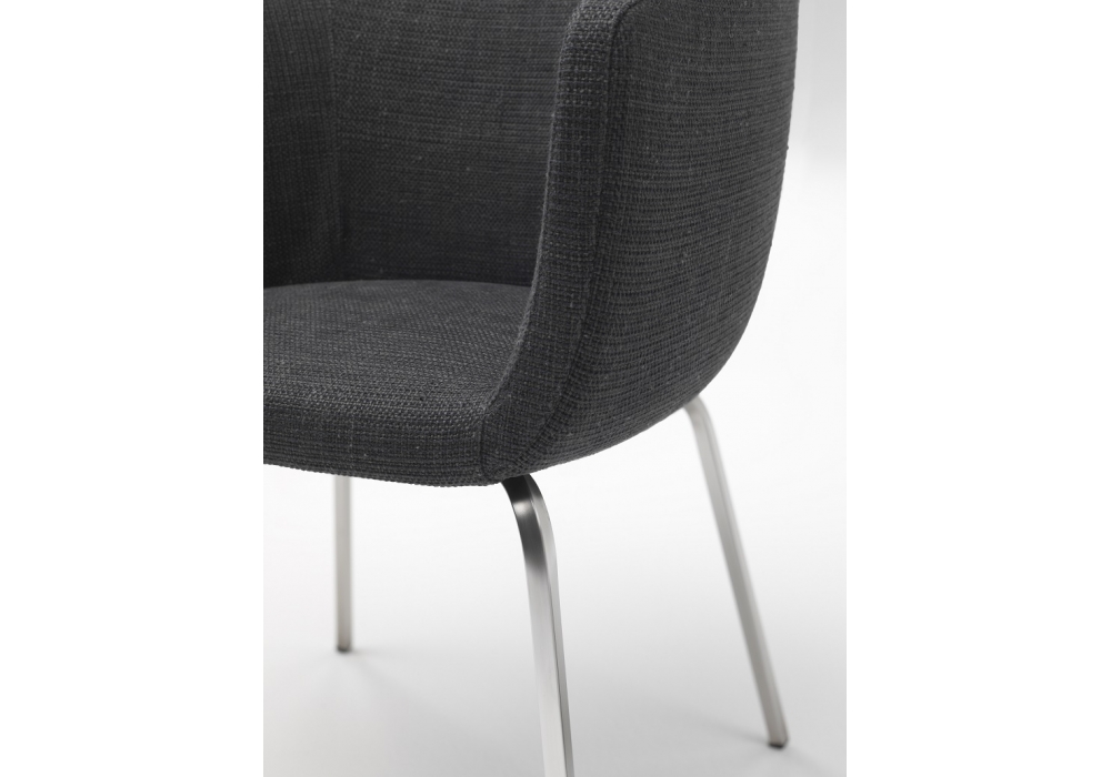Nut designed by Piero Lissoni for Living Divani is a small armchair, one-piece frame with steel insert and flexible, cold-expanded polyurethane foam padding and seat padded with polyurethane foam. Covering in 100% polyether thermally bonded onto a polyamide velveteen backing. Base in squaresection 15x15mm AISI 304 stainless steel tube, with matt-satin finish. Fabric or leather upholstery.