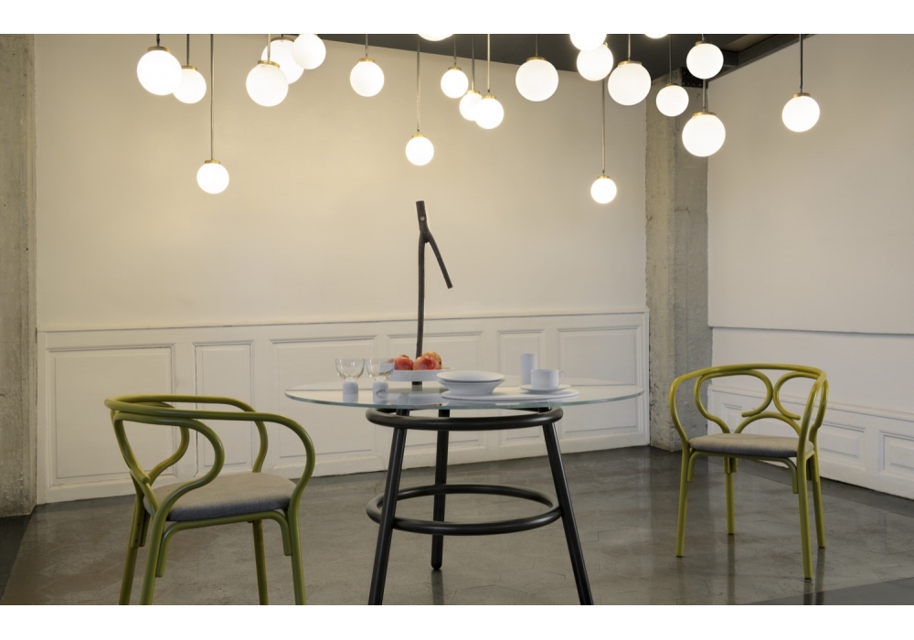 Brezel von LucidiPevere für Gebrüder Thonet Vienna entworfen, ist ein Sessel aus gebogener Buche in lackierter Ausführung mit gepolsterter Sitzfläche. Struktur und Sitz in verschiedenen Ausführungen erhältlich.