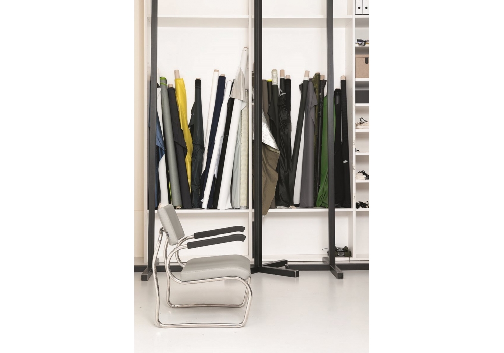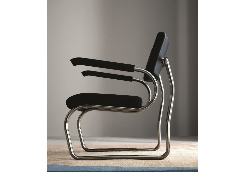 850 Sant'Elia von Giuseppe Terragni für Zanotta ist eine Kleiner Sessel mit Gestell aus Inox-Stahl 18/8. Polsterung aus Polyurethan und Bezug aus Leder.