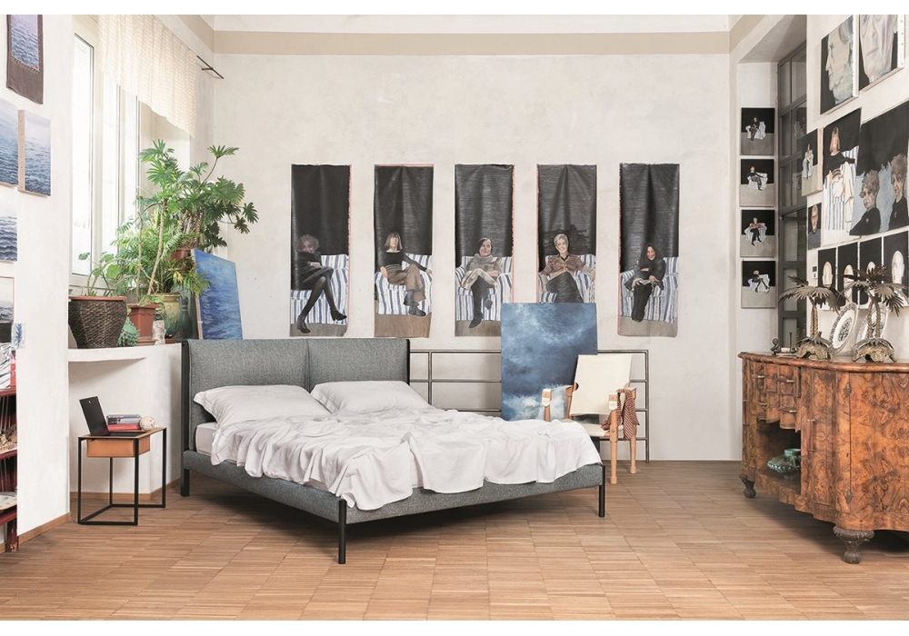 851 Moretta von Bernard Marstaller für Zanotta ist eine Sich den bodenunebenheiten anpassender zerlegbarer Stuhl mit Gestell aus Buche, naturfarben. Schräg verstellbare Rückenlehne. Abnehmbarer Bezug aus Telaforte oder aus Kernleder.