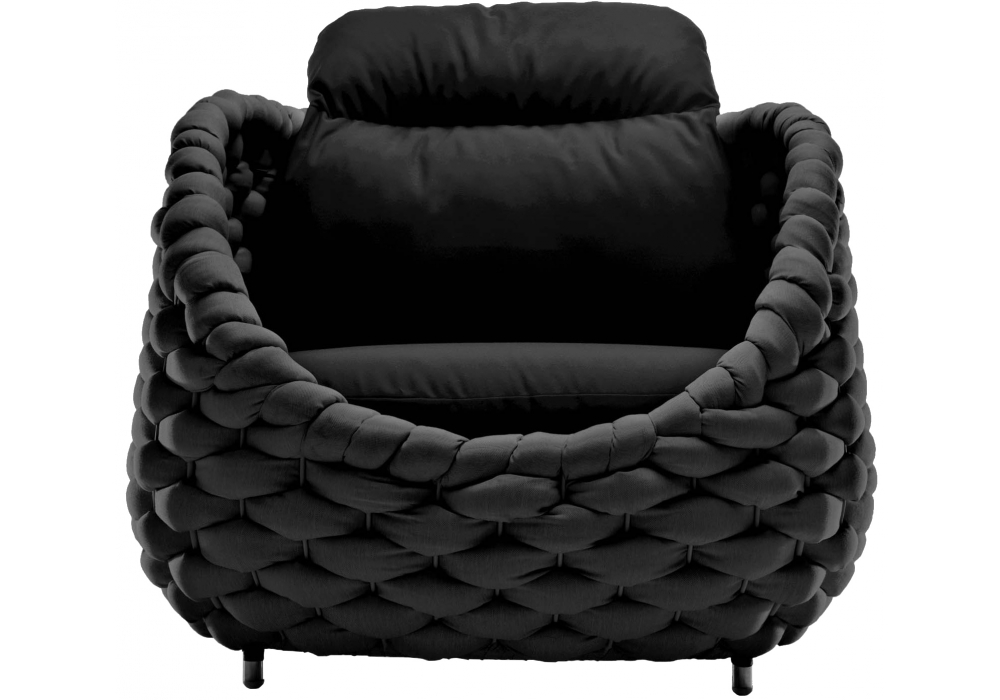 Rapunzel von Kenneth Cobonpue entworfen, ist ein Armstuhl mit Stahlkonstruktion, Urethanschaum und Polypile. Verfügbar in mehreren Ausführung.