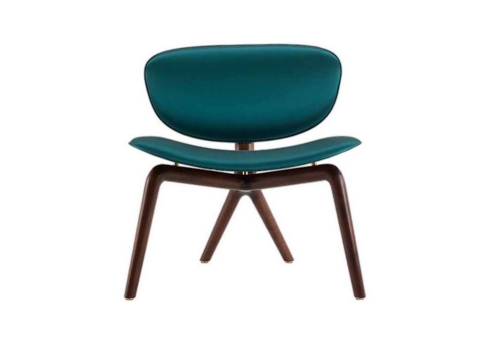 Rondine von Mattia Albicini & Luca Martorano für Ceccotti Collezioni entworfen, ist ein Armstuhl aus massivem amerikanischem Nussbaum, Sitz und Rückenlehne aus gepolstertem, gebogenem Sperrholz mit Stoff, Leder oder Naturleder.