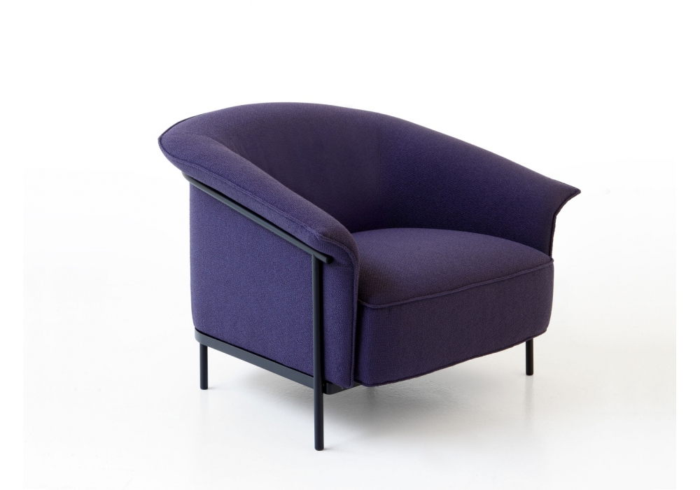 Kite, von GamFratesi für Porro entworfen, ist einer Armstuhl mit schwarz lackiertem Metall-Struktur und Leder oder Stoff gefüttert Polsterung. Dieser kleine Sessel ist ein weiches, aber auch großzügiges Produkt, das durch seinen immergrünen Look und seinen zeitlosen Charme einen Wartebereich des Büros bewohnen kann.