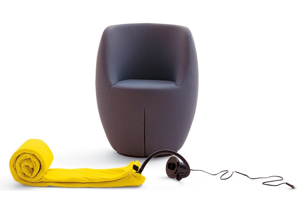 Pisola von Denis Santachiara für Campeggi entworfen, ist ein kleiner Sessel, der eine Luftmatratze mit einer elektrischem Kompressor enthalten kann. Die Struktur besteht aus Metall, während die Polyurethan-Füllung mit einer Polyester-Polsterung überzogen ist. Das Luftbett besteht aus PVC, eine leichte Polyesterpolsterung trennt den Lycra-Bezug vom PVC.