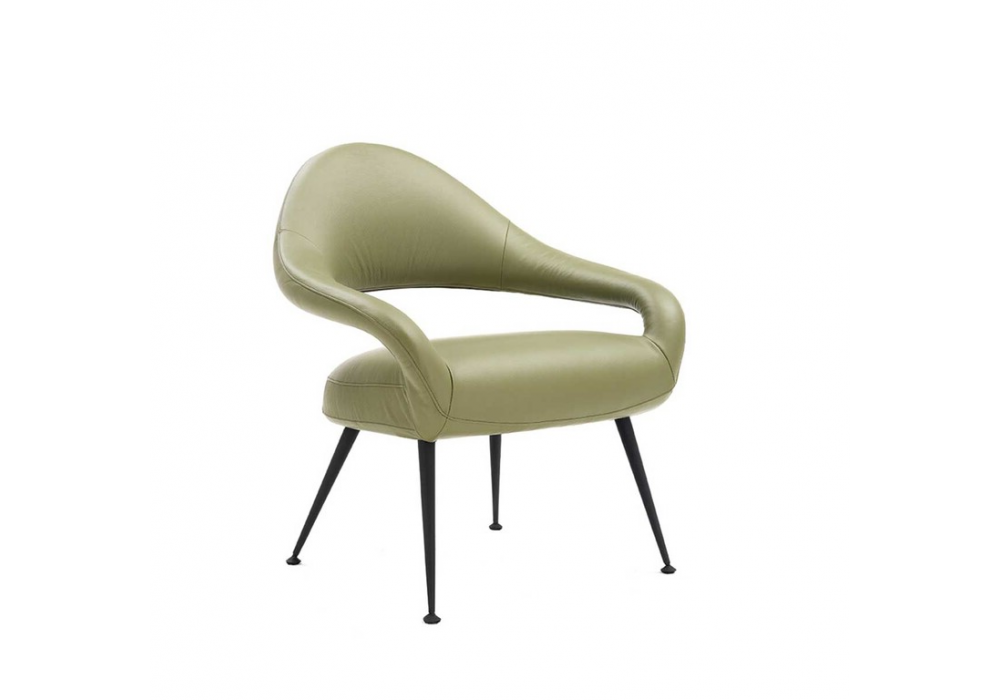 Letizia, von Gastone Rinaldi für Poltrona Frau entworfen, ist ein Sessel mit einer tragenden Struktur aus Stahl und einer Polsterung aus geformtem Polyurethanschaum. Die konischen Stahlfüße sind in drei Ausführungen erhältlich: Esche furniert in Teakholzbeize mit Antik-Finish und Messingkappen; schwarz strukturlackiert, mit Runzeleffekt, mit schwarzen Kappen; verchromt poliert mit verchromten Kappen. Polsterung in Pelle Frau® Leder oder Stoff.