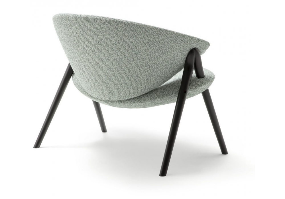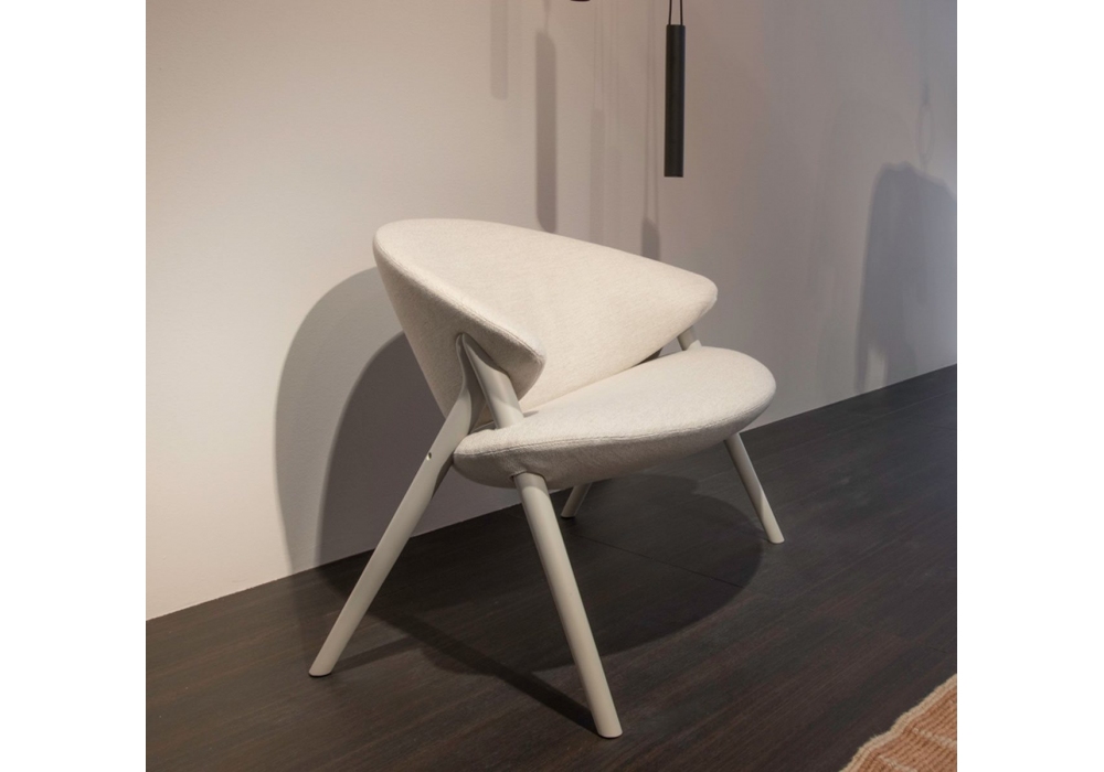 883 Oliva von Constance Guisset für Zanotta entworfen, ist ein Armstuhl mit Struktur aus massivem Ahornholz und abnehmbarem Bezug aus Leder oder Stoff.