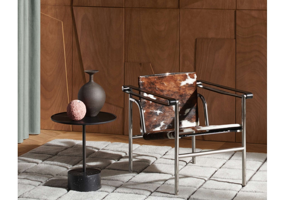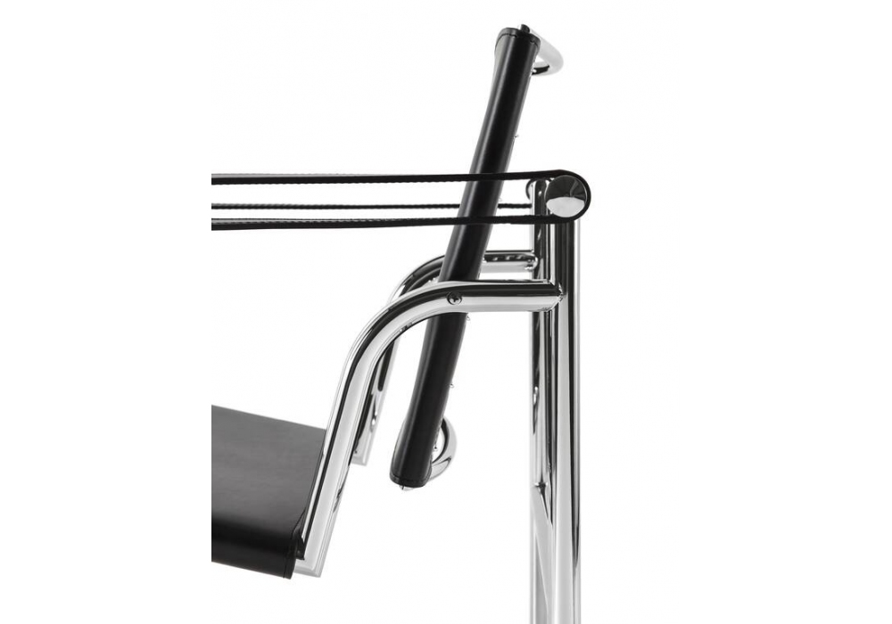 1 Fauteuil Dossier Basculant von Le Corbusier, Pierre Jeanneret und Charlotte Perriand für Cassina entworfen, ist ein kleiner Sessel mit schwarz lackierter oder verchromter Struktur. Sitz und Rückenlehne aus Sattelleder mit aufeinander abgestimmten Armlehnen. In den Versionen mit pelzbezogenem Leder sind die Armlehnen aus schwarzem Leder. Erhältlich in verschiedenen Ausführungen.