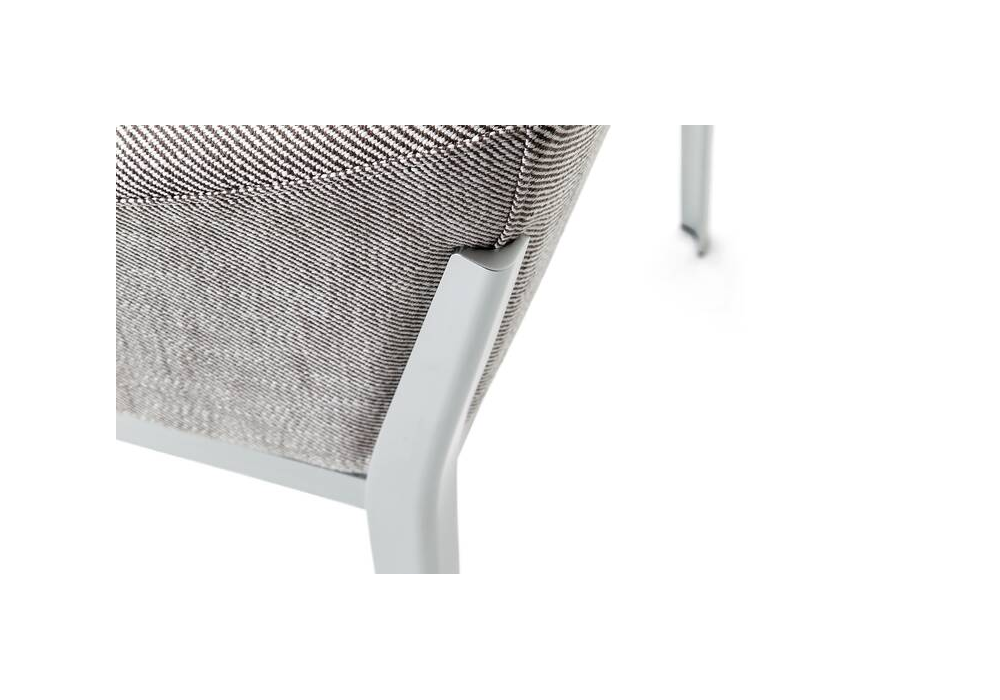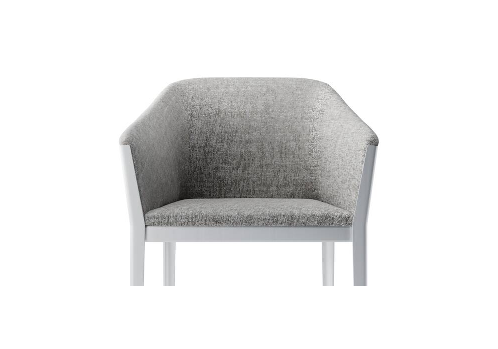 140 Cotone Slim von Ronan & Erwan Bouroullec für Cassina entworfen, ist ein Armstuhl mit Aluminiumbeinen und Polsterung aus Stoff oder Leder.